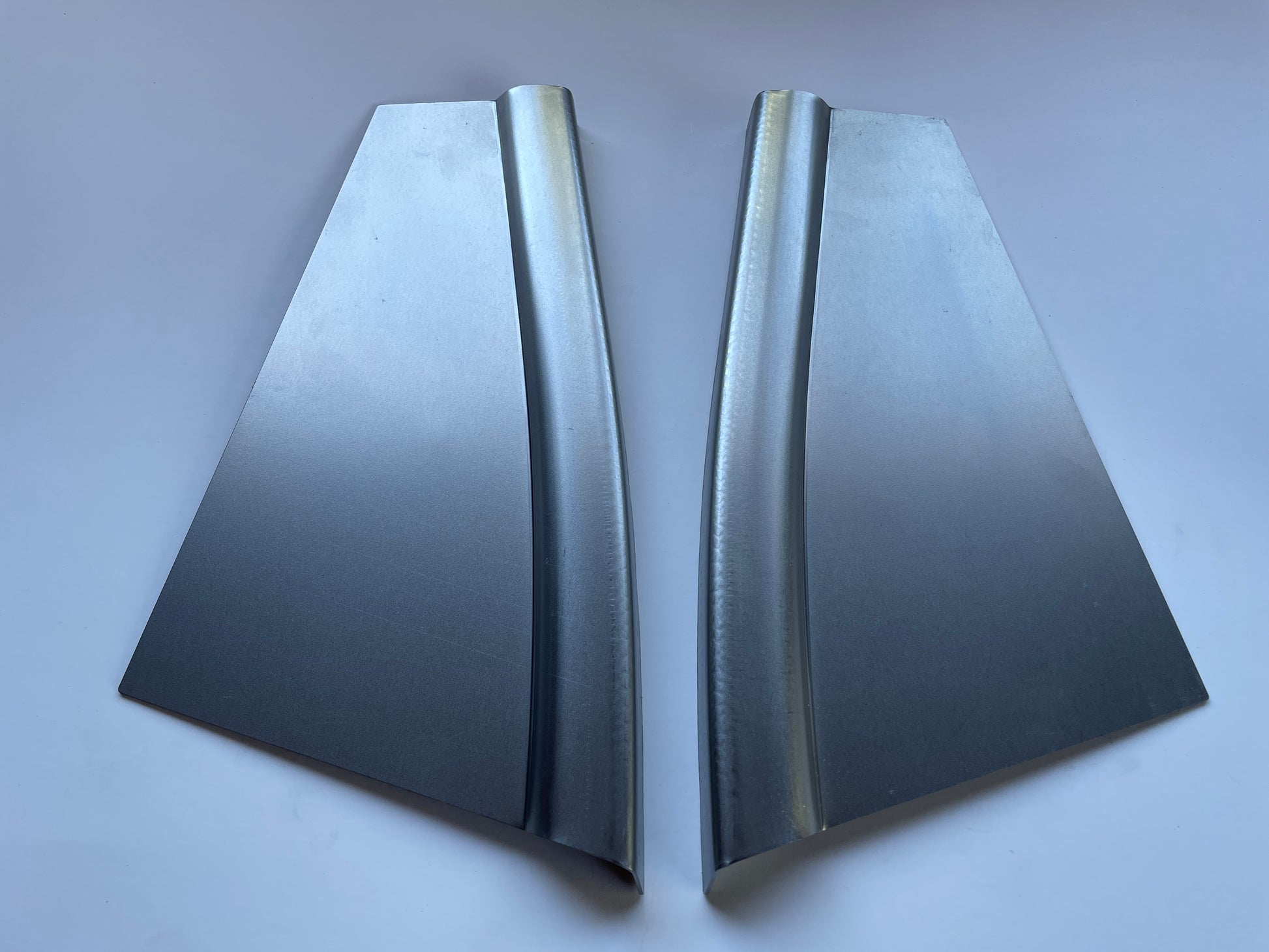 These weld-in patch panels repair damage to the lower beaded portion of the cowl on 35-37 Ford Pickups and truck cabs. The beads shape detail was taken from a good cab and is exactly like the original. Laser cut and formed from 18 gauge cold rolled steel. Sold in pairs.