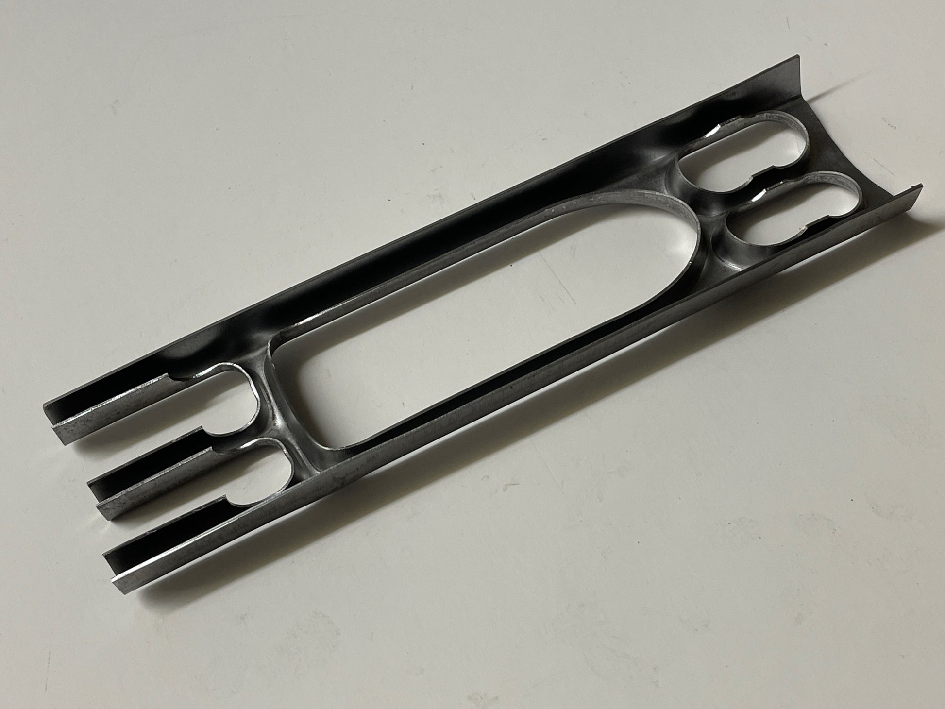 If you have a 35 or 36 Ford pickup or truck and the grille has a damaged, destroyed or completely missing crank hole, then this is the piece you’re looking for to repair your otherwise perfect grille. This part is laser cut and die stamped from 20g cold rolled steel and is just like the original piece. All specs taken from a good original 1936 Pickup grille. Grille bars are available as well and are sold individually. Made in the USA |