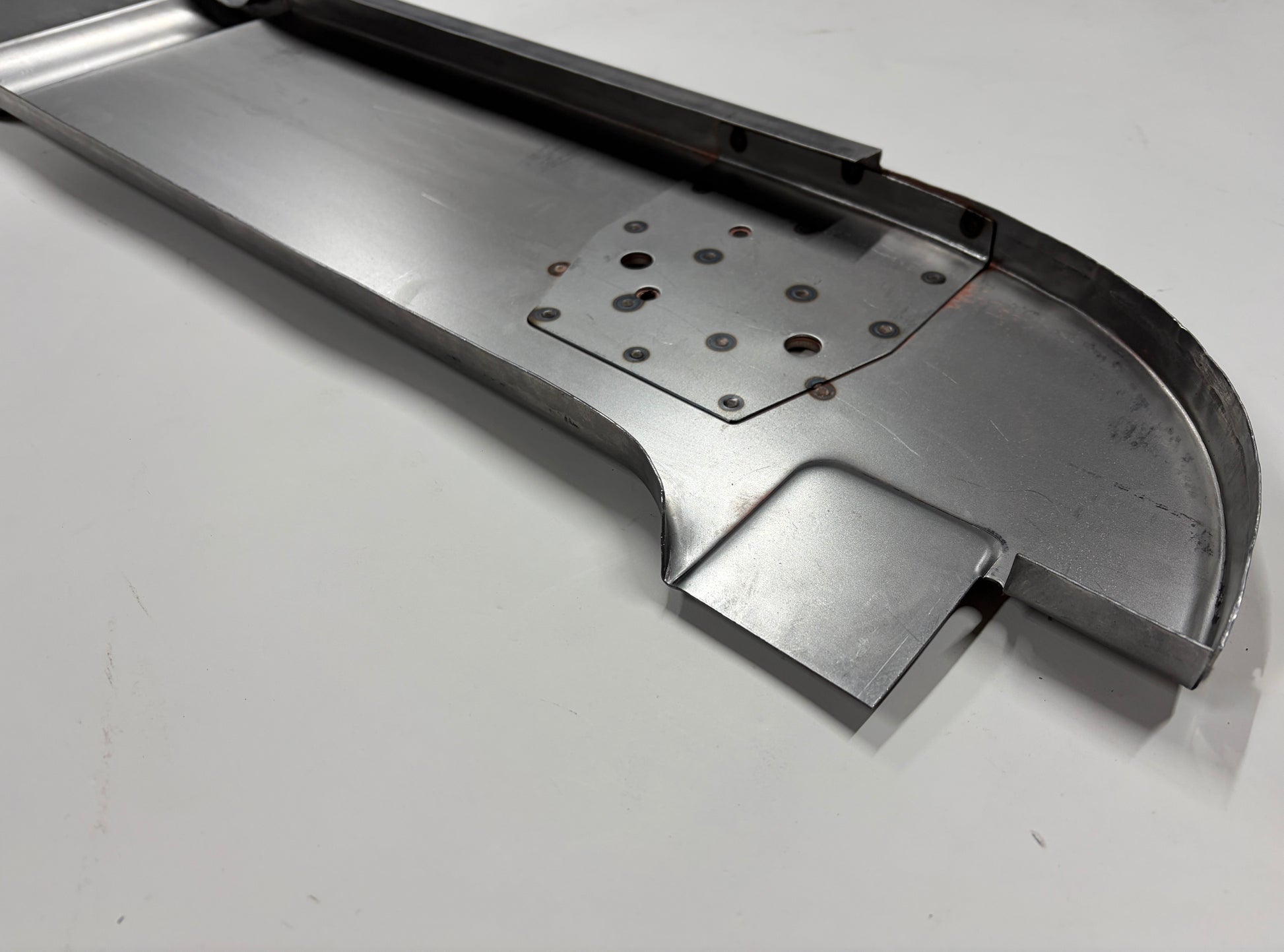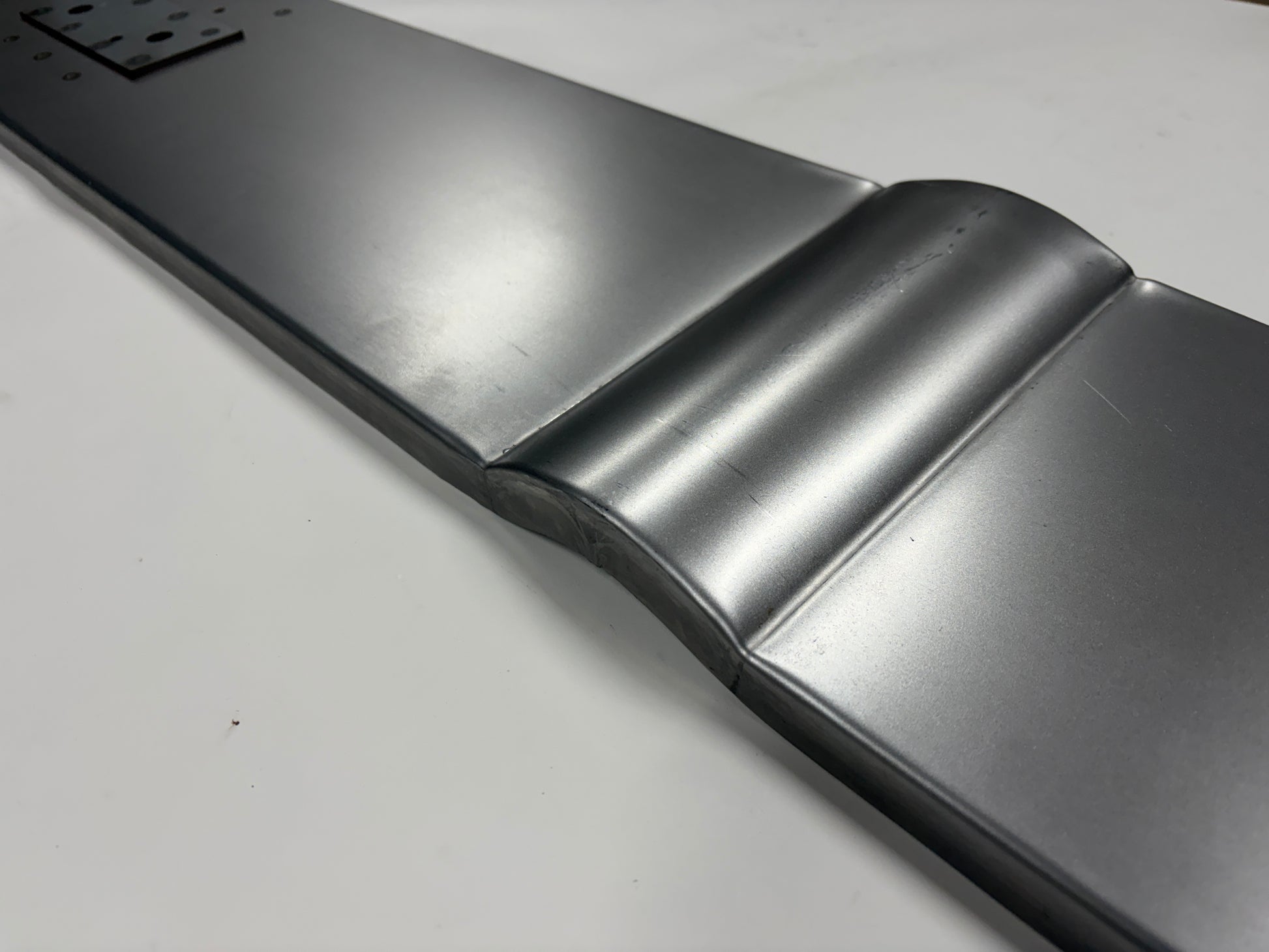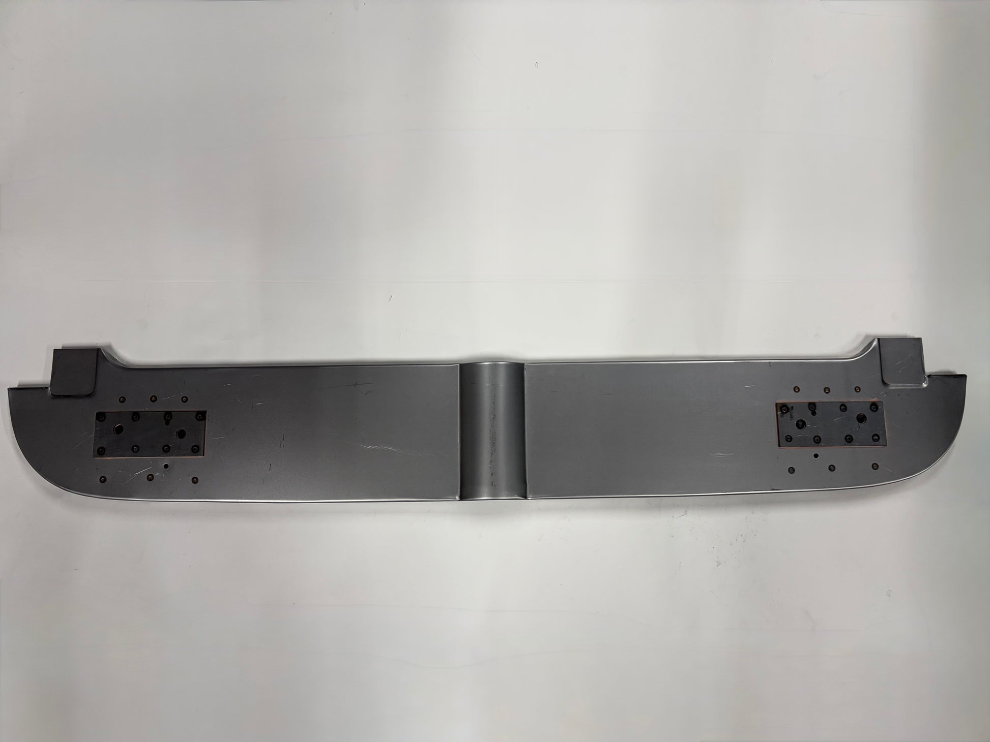 This is the rearmost floor panel and rear cab panel lower support for 1935, 1936 and 1937 Ford Pickup and Truck cabs. I believe this is also the same panel that will fit 1938 and 1939 cabs as well but please confirm before ordering. The panel is the full width panel and is complete with the inside and outside rear cab mounting reinforcement plates, already spot welded in place. Prior to spot welding, each panel was prepared and treated with a weld thru primer to prevent corrosion between these overlapping panels. Formed from 18 gauge cold rolled steel.